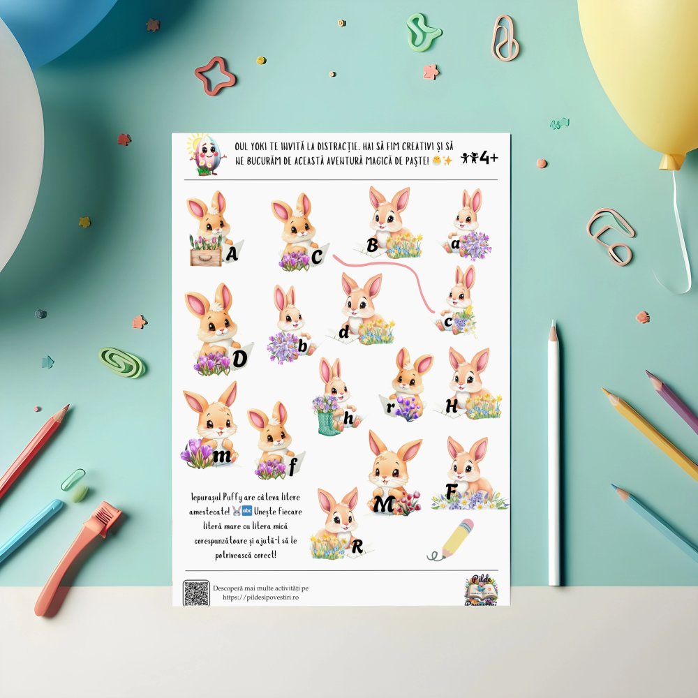 Primăvara aduce veselie, iar Oul Yoki este pregătit să-i însoțească pe cei mici într-o aventură educativă plină de culoare și distracție! Acest set de fișe educative tematice de Paște este conceput pentru a dezvolta abilități esențiale prin joc și activități captivante.