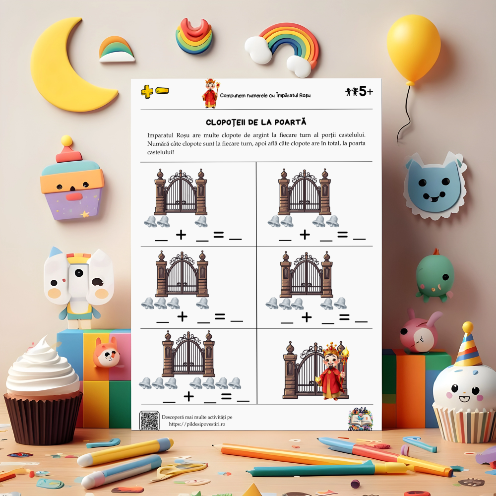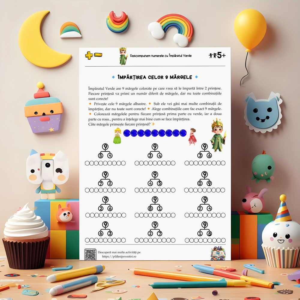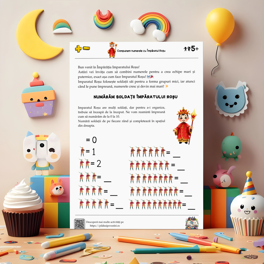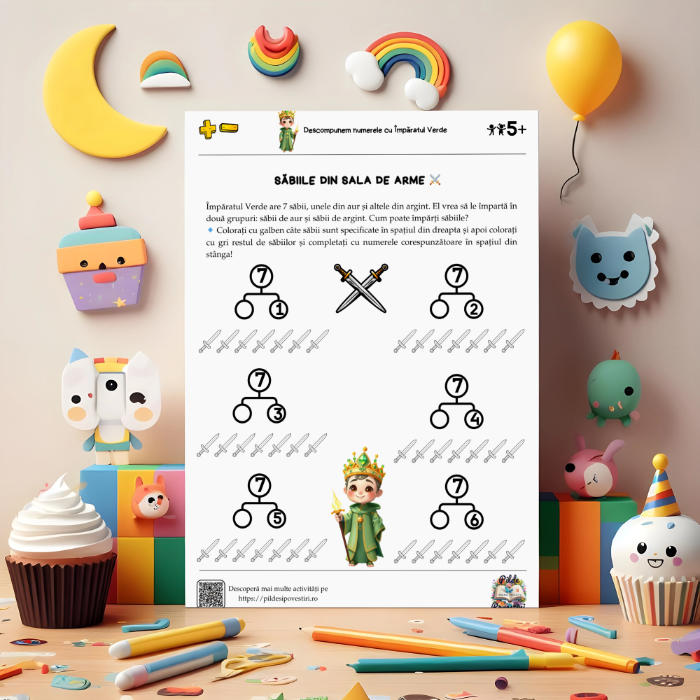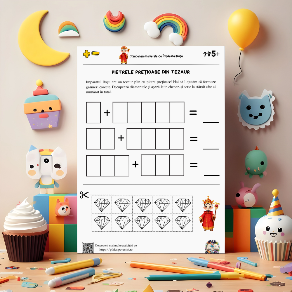 ✔️ Activități variate: alegerea răspunsurilor corecte, împărțirea comorilor împăraților, identificarea combinațiilor pentru fiecare număr