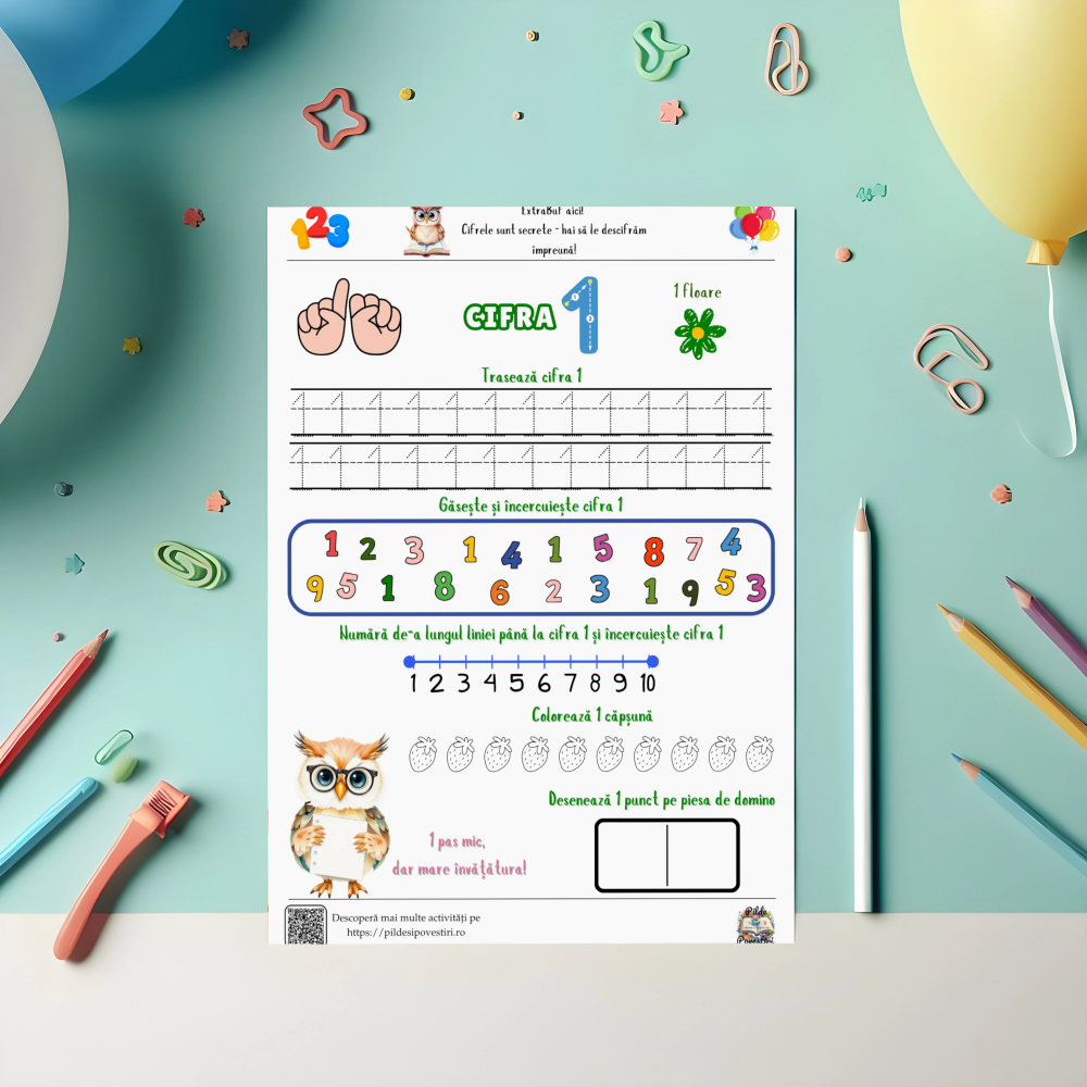 🔢 Exersarea cifrelor 1-10 – Trasare, recunoaștere și asociere.