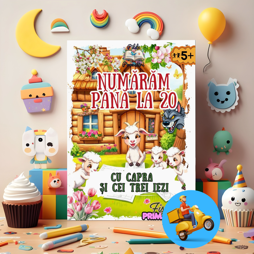 Acest pachet fizic, livrat direct prin curier, este creat special pentru copiii care încep să descopere magia numerelor! Cu activități variate, trasee distractive și ilustrații adorabile, cei mici vor învăța să recunoască și să scrie numerele de la 1 la 20 într-un mod jucăuș și atractiv.